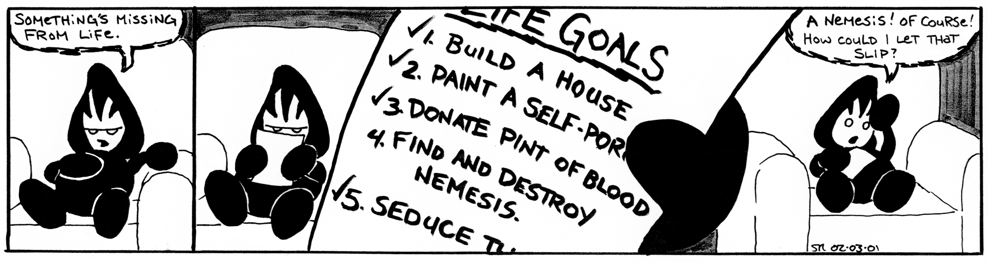 45. Life Goals September 29, 2011 Return to: Nemesis / Making ComicsFull resolution (3158 × 842) Image navigation Previous Image Next Image 45. Life Goals Like Loading...